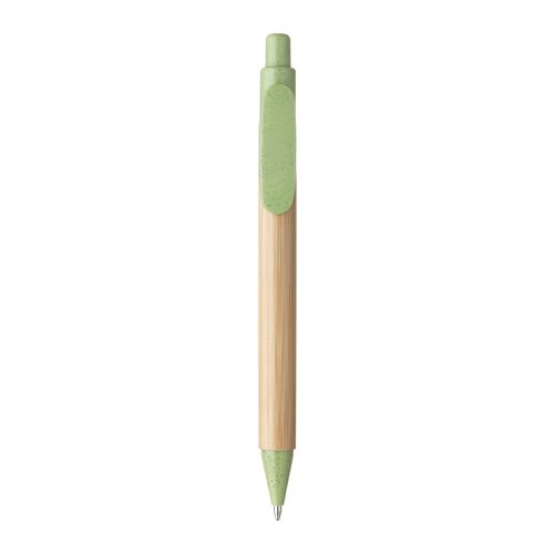 Der Kugelschreiber hat einen Clip, einen Druckknopf und eine Spitze aus Weizenstroh. Mit diesem Stift zeigen Sie, dass Sie dank dieser grünen Kombination nachhaltig handeln.