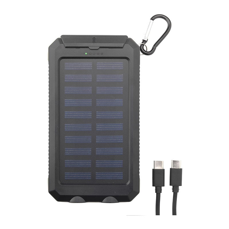 Diese Solar-Powerbank verfügt über eine starke Kapazität von 8000 mAh und ein robustes Gehäuse aus recyceltem ABS. Damit garantiert sie schnelles Aufladen und Umweltfreundlichkeit. Stoßkanten sowie spritzwasser- und staubdichtes Design sorgen für zusätzlichen Schutz.