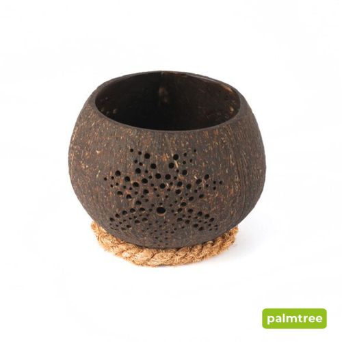 Möchten Sie Ihren Mitarbeitern oder Kunden ein überraschendes Geschenk machen? Mit diesem einzigartigen Kerzenhalter liegen Sie genau richtig. Es handelt sich um eine handgefertigte Kokosnussschale, in die man ein Teelicht stellen kann. Die einzigartigen Designs erzeugen einen besonderen Effekt, wenn Sie die Kerze anzünden. Sie können aus zwei verschiedenen Designs wählen.