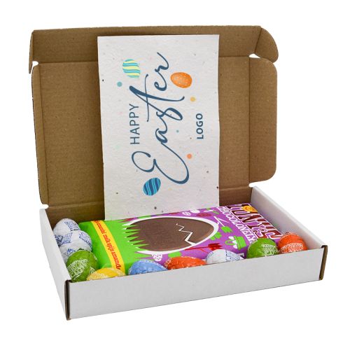 Mit diesem Geschenk verwöhnen Sie Ihre Kunden mit einer Schachtel leckerer Fairtrade-Schokolade. Die Schachtel ist gefüllt mit einem Osterriegel von Tony's Chocolonely, 9 Tony's Chocolonely Fairtrade-Ostereiern in verschiedenen Geschmacksrichtungen und einer Samenpapierkarte (A6). Für den vollfarbigen Druck der Karte können Sie Ihr eigenes Design hochladen.