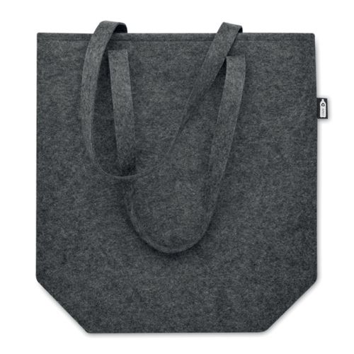 Mit dieser Tragetasche aus Filz stehlen Ihre Kunden garantiert die Show! Die Tasche ist ideal für die täglichen Einkäufe oder für einen Tagesausflug. Sie hat lange Tragegriffe und einen Blockboden, sodass noch mehr hineinpasst. Die Kombination der Materialien Filz und recyceltem Kunststoff verleiht der Tasche ein robustes, robustes und langlebiges Erscheinungsbild.