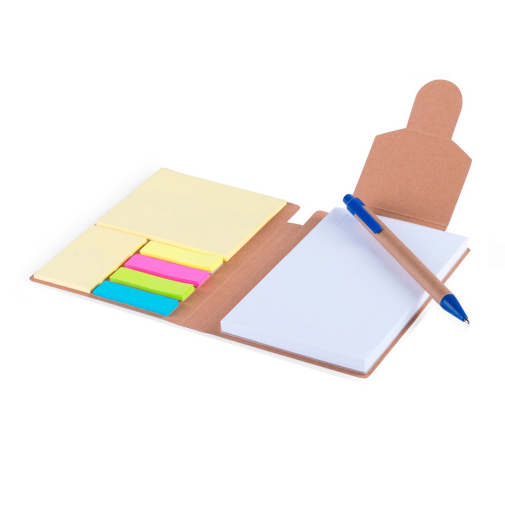 Ein fröhlicher Notizblock aus Pappe mit einem Stift aus Recyclingkarton. Erhältlich in 5 verschiedenen Farben. Der Notizblock besteht aus 70 Blatt blanko Papier, 25 großen Memozetteln, 25 kleineren Memozetteln und 100 Mini-Memozetteln in vier verschiedenen Farben. Das Notizbuch kann oben auf das Etikett bedruckt werden.